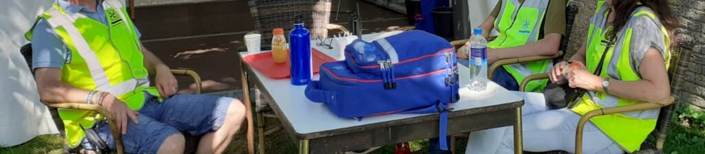 Ook zijn de vrijwilligers persoonlijk uitgerust met EHBO-rugtassen, voor directe hulp ter plaatse.
